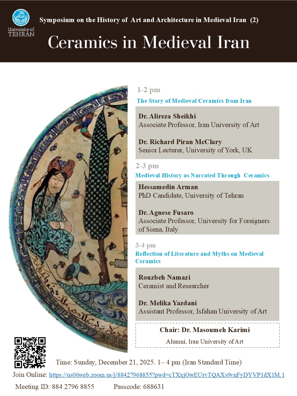با حضور دکتر شیخی، عضو هیات علمی دانشکده هنرهای کاربردی برگزار می شود: نشست علمی سفال های دوره میانه در دانشکده ادبیات دانشگاه تهران ۲۶ آذر ۱۴۰۴ | ۱۱:۱۴ کد : ۷۴۳۵ در دانشکده چه میگذرد؟ ارسال به دیگران نام شما ایمیل شما ایمیل دریافتکننده ارسال انصراف تعداد بازدید:۴۱